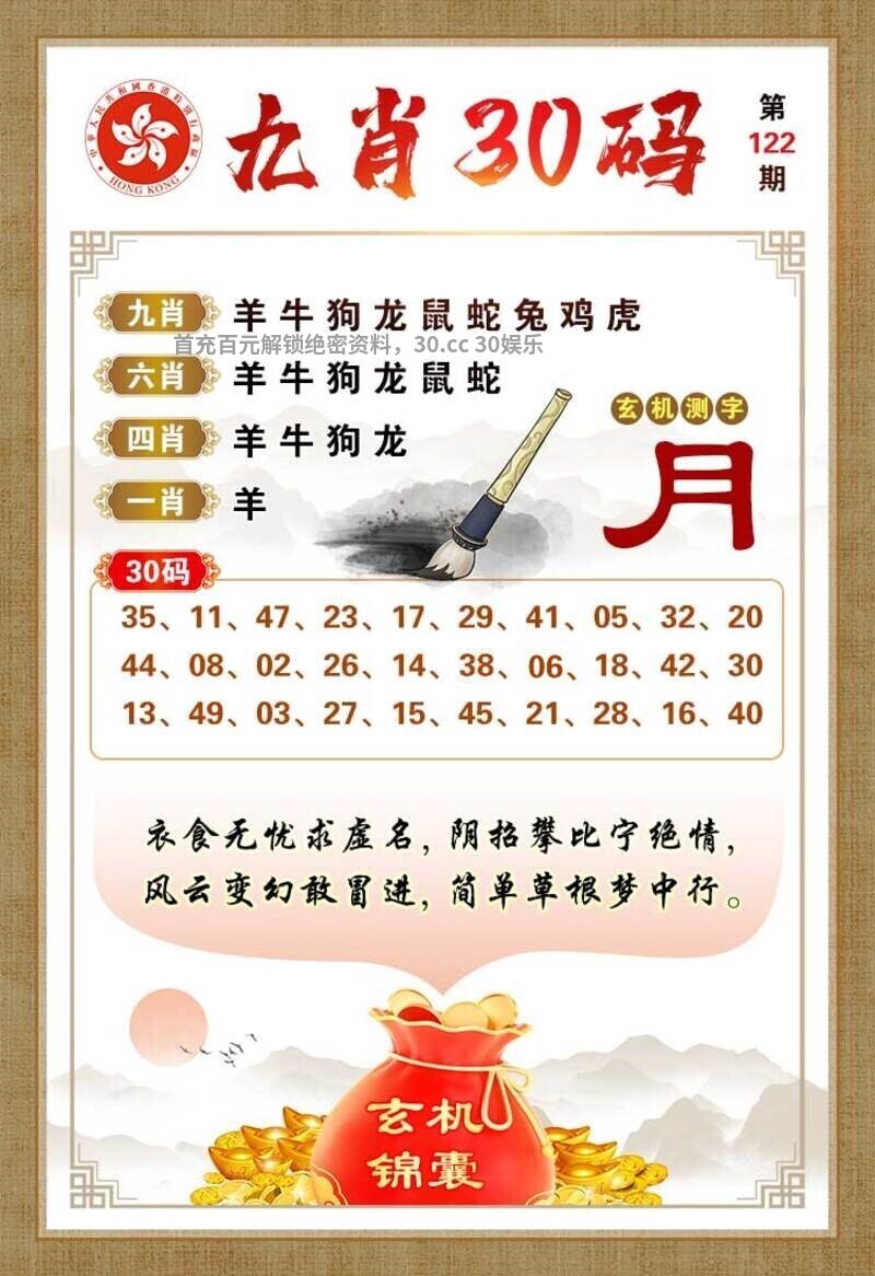 122期凤凰于飞【九肖30码图】已公开